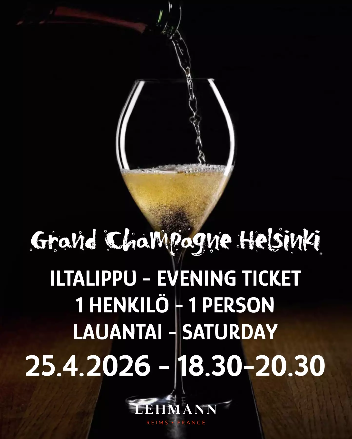 Pääsylippuun sisältyy Lehmann Grand Champagne 25cl -samppanjalasi.
